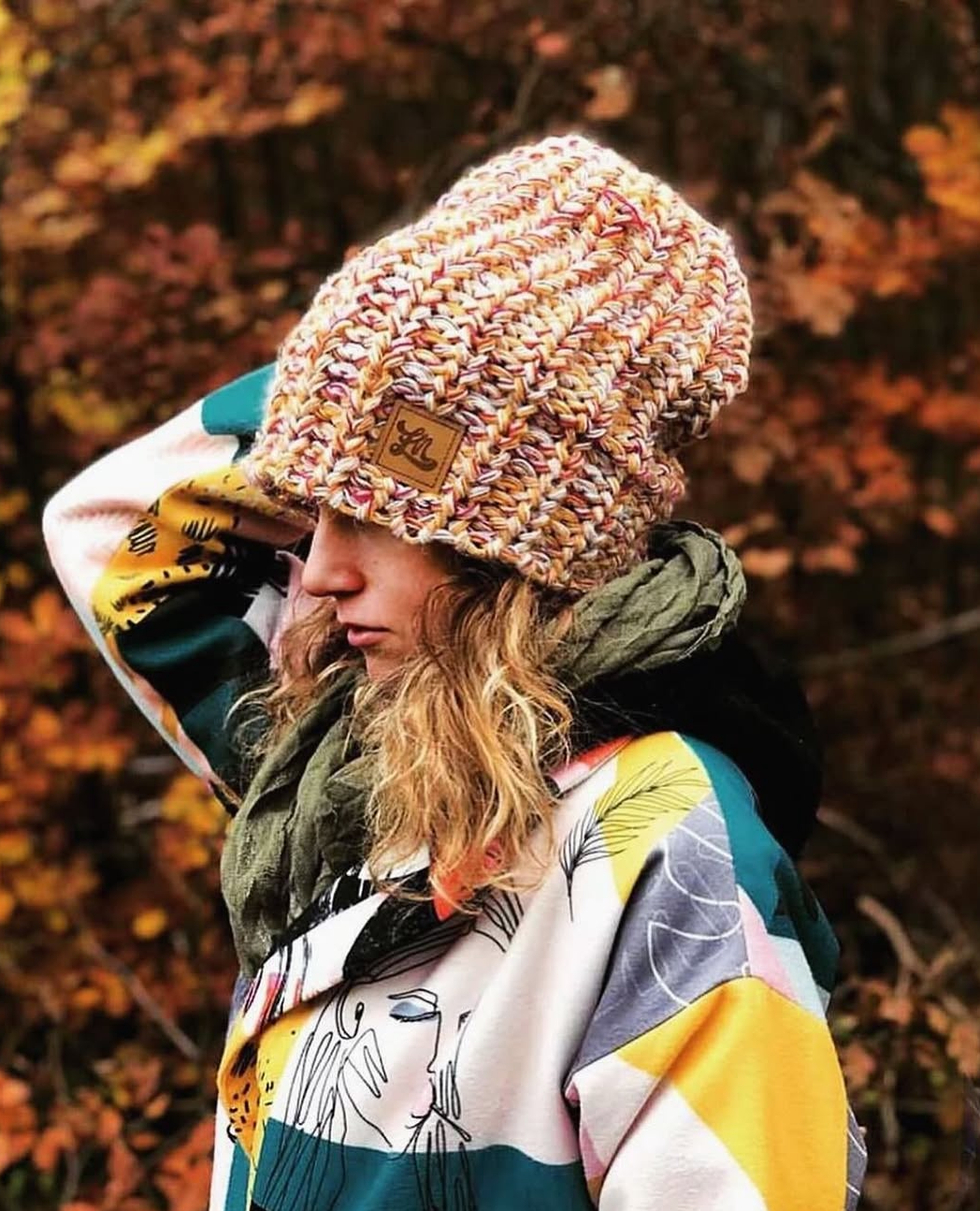 Czapka damska surferska.Duza czapka dziana na jesień/zimę. Doskonale grzeje, pięknie wygląda, produkcja w 100% polska. Na przodzie naszywka Łap Nas.