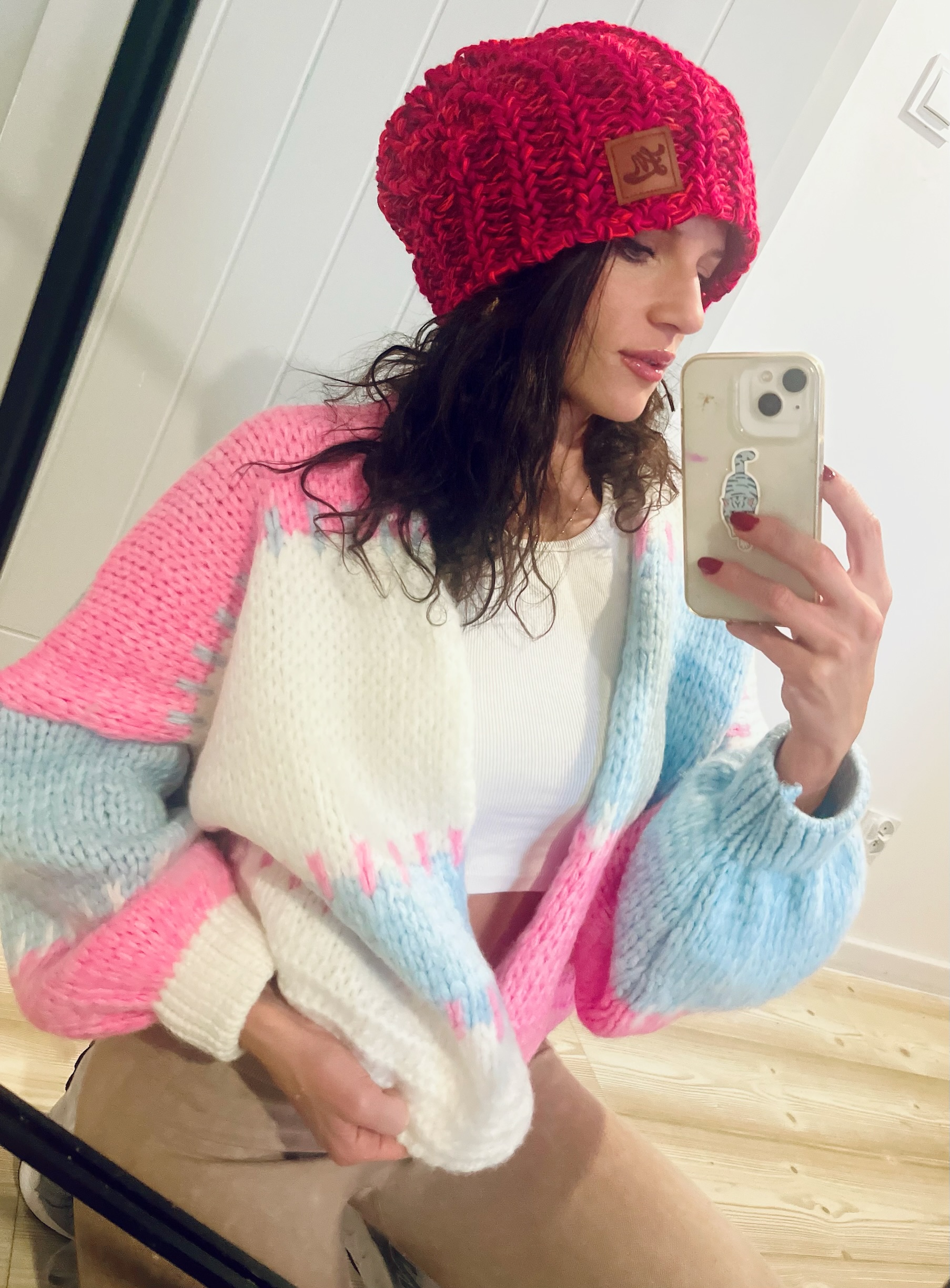 Sweter damski kolorowy pastelowy, Świetny kardigan z domieską Wełny idealnie sprawdzi się jesienią i zima gdy dni są chłodniejsze ale i latem, wietrzynymi wieczorami nad morzem, sweter damski kolorowy ma szerokie rękawy ze ściągaczem na końcu , fason jest krótszy i pięknie opada z ramion.