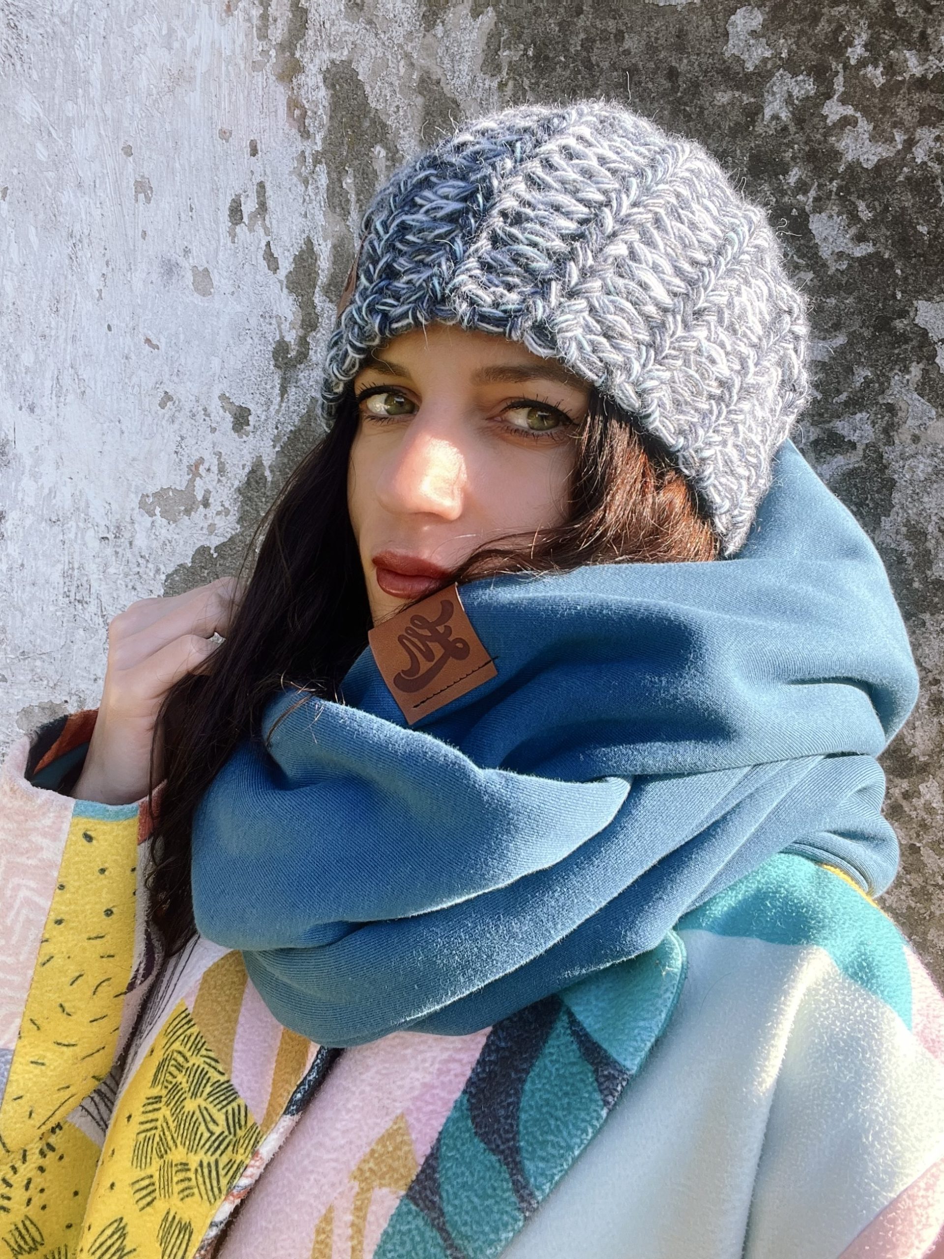 Komin z kapturem niebieski unisex jest uszyty z grubej ocieplanej dzianiny, stanowi cieplutkie okrycie na głowe i szyje , komin przylega szczelnie do szyji dzięki temu jest bardzo ciepły, możesz delikatnie osłonić nim również twarz, niezwykle efektowny i oryginalny pomysł który ożywi każdą stylizację, kaptur po ściągnieciu z głowy służy jako sam komin. Idealny w sezonie zimowym dl;a niej i dla niego. Dzianina i sam produkt powstał w 100% w Polsce.