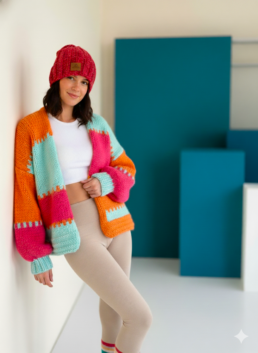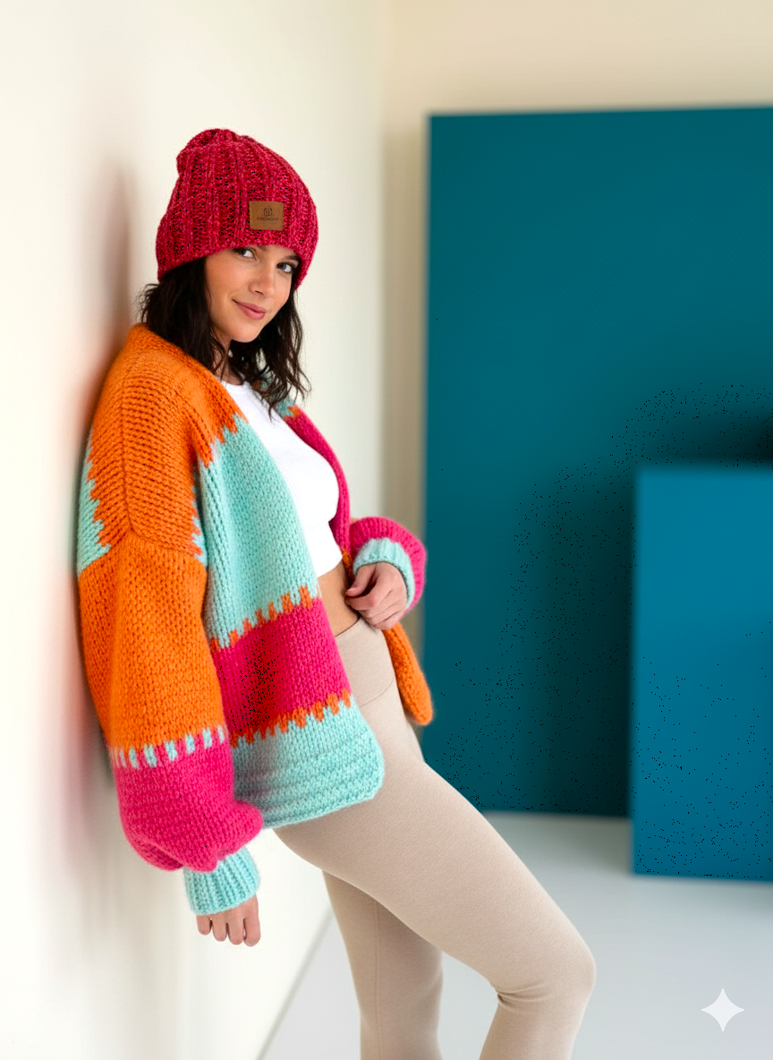 Sweter damski kolorowy kardigan Świetny kardigan z domieską Wełny idealnie sprawdzi się jesienią i zima gdy dni są chłodniejsze ale i latem, wietrzynymi wieczorami nad morzem, sweter damski kolorowy ma szerokie rękawy ze ściągaczem na końcu , fason jest krótszy i pięknie opada z ramion.